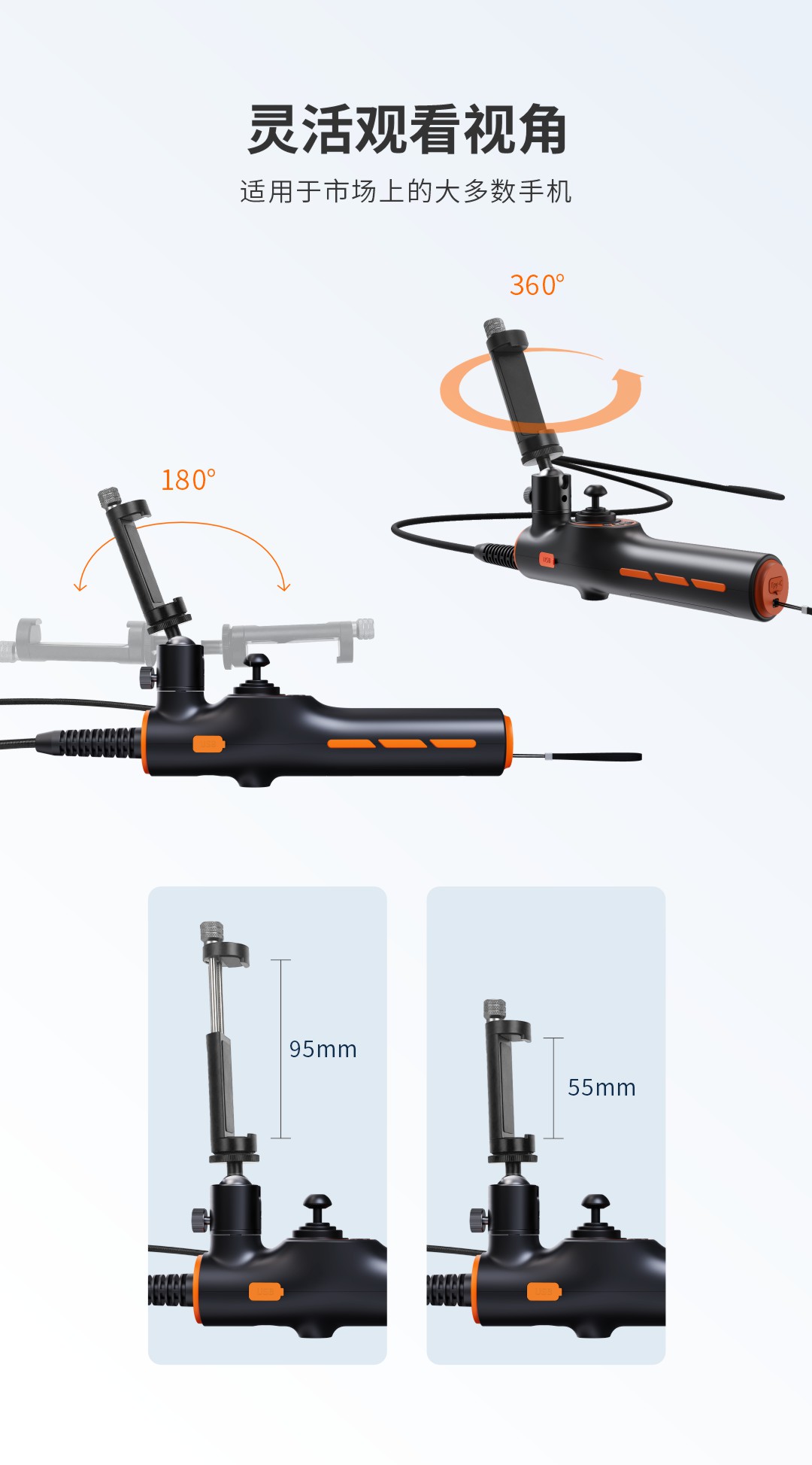优势特点:兼容ISO、安卓、鸿蒙系统;探头360°全方位摆向;高温提示保护;即插即用;可生成检测报告