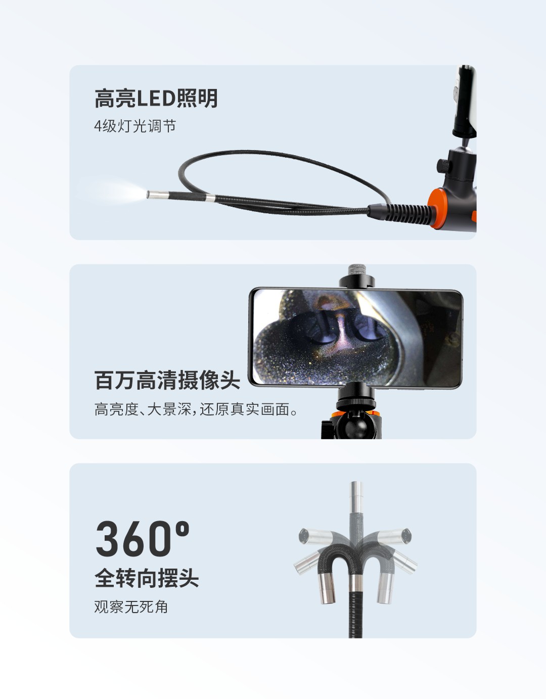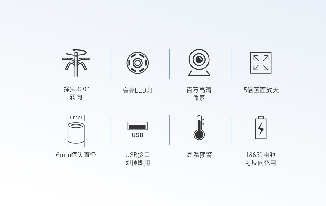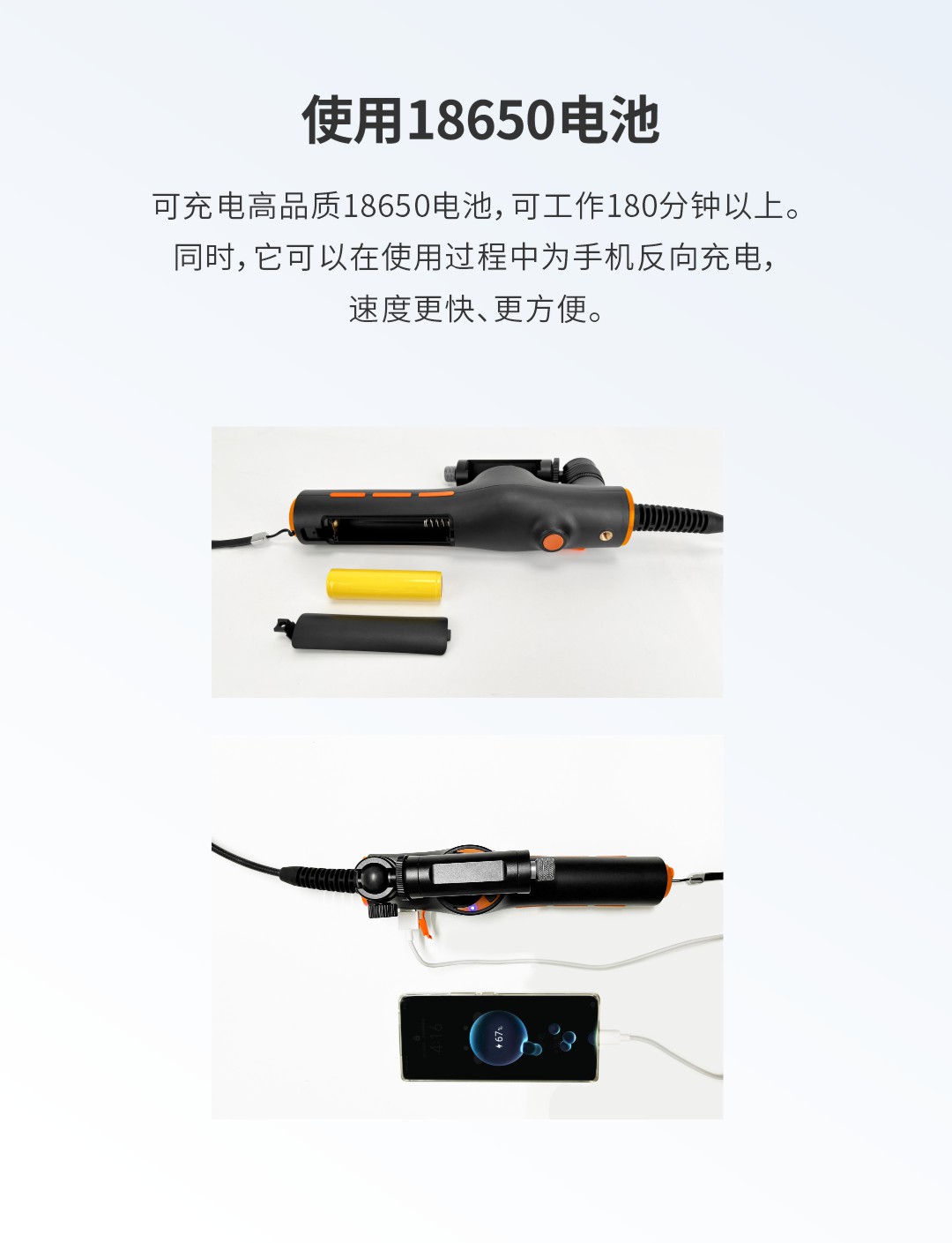 优势特点:兼容ISO、安卓、鸿蒙系统;探头360°全方位摆向;高温提示保护;即插即用;可生成检测报告