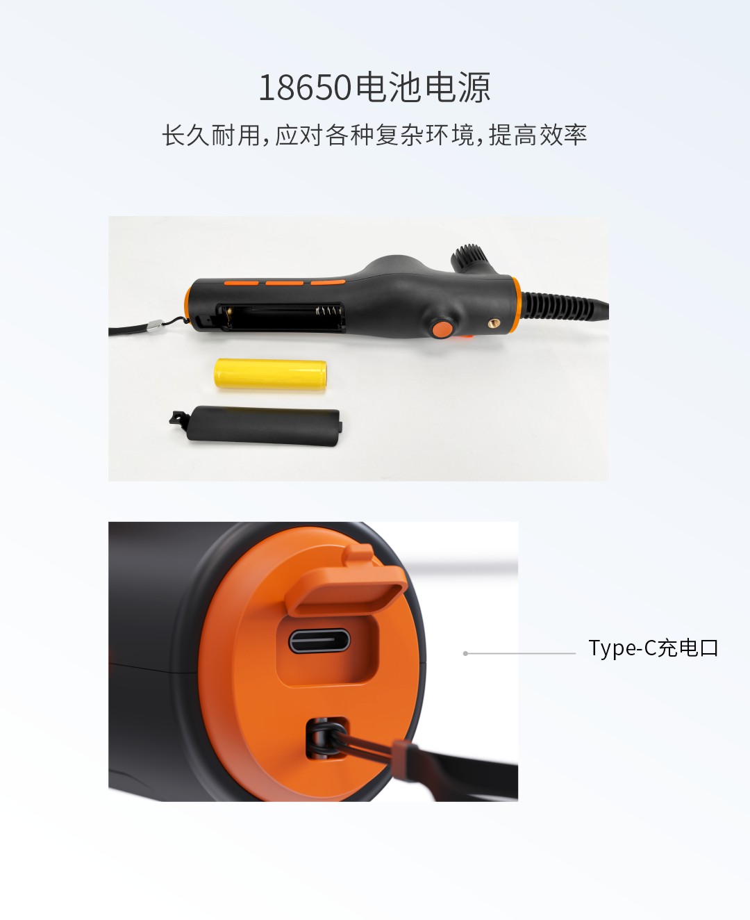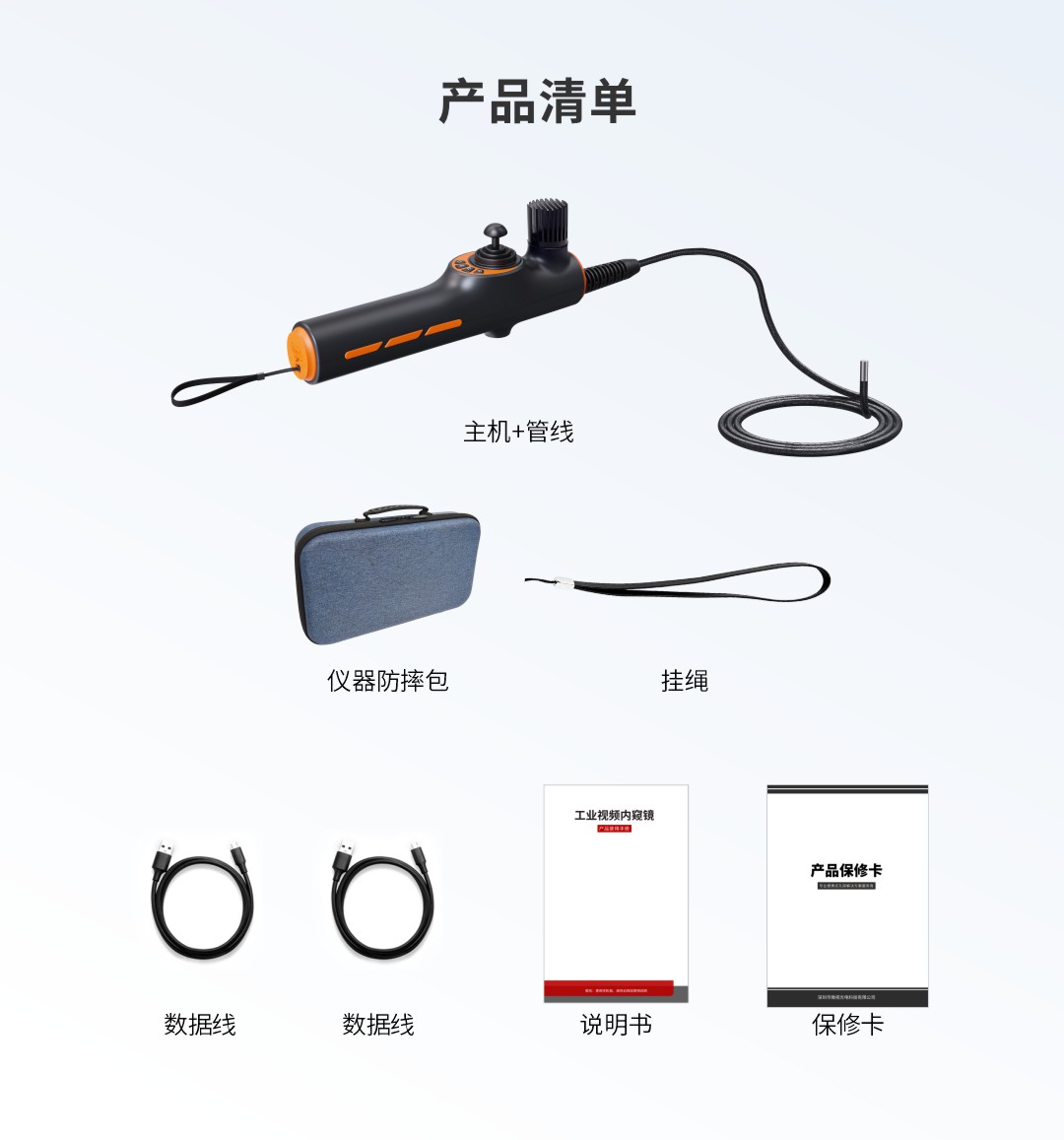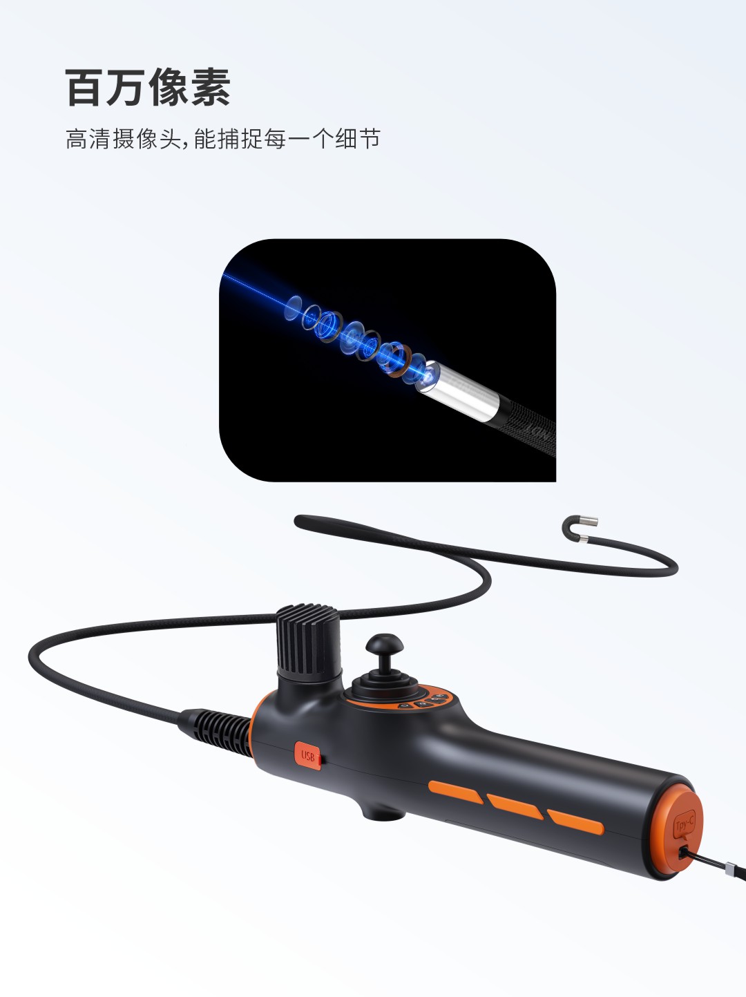 优势特点:USB接口直连电脑(工控机),0.95-8mm管径可选、360°全方位摆头、18650电池、配备Type-C充电口充电